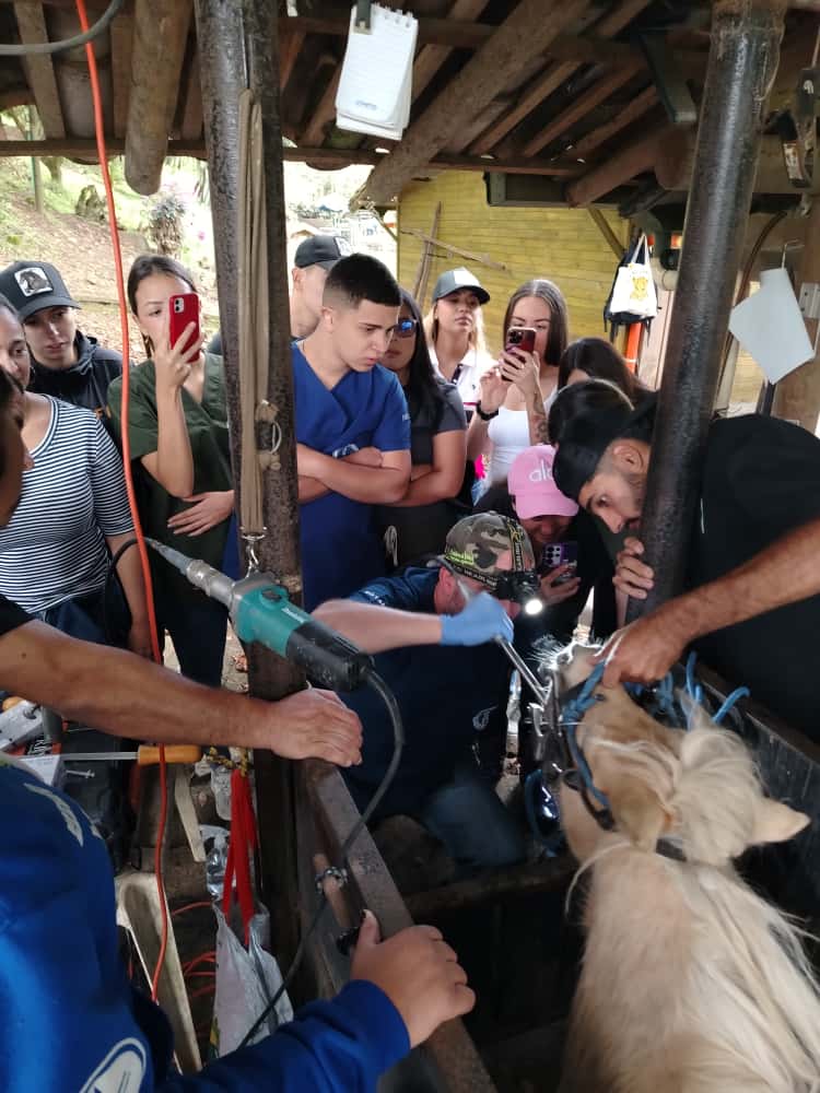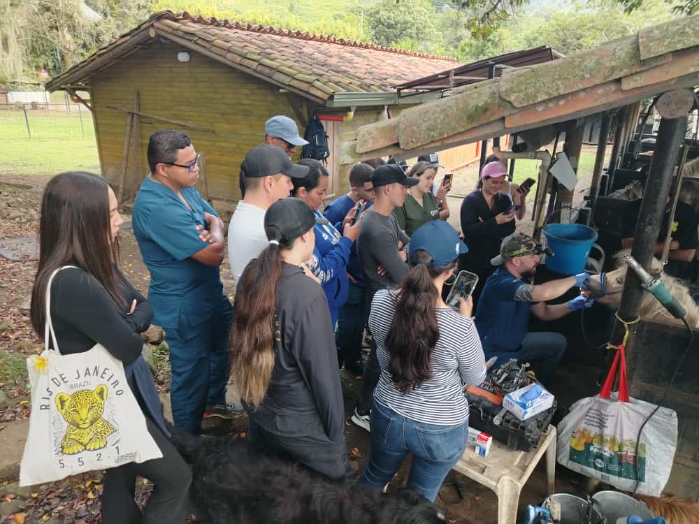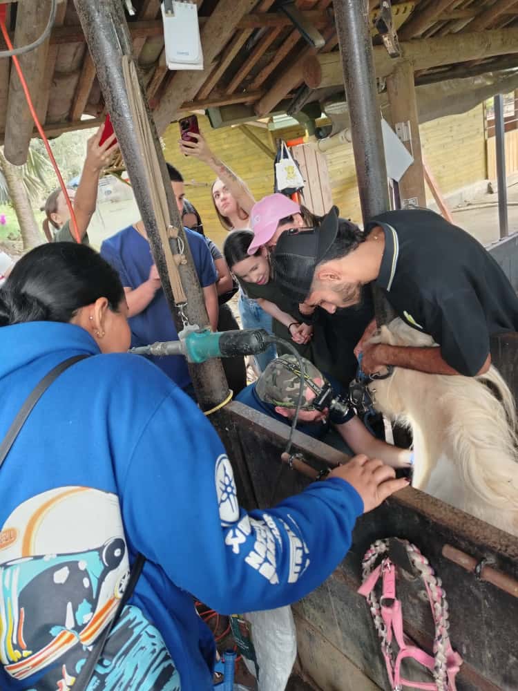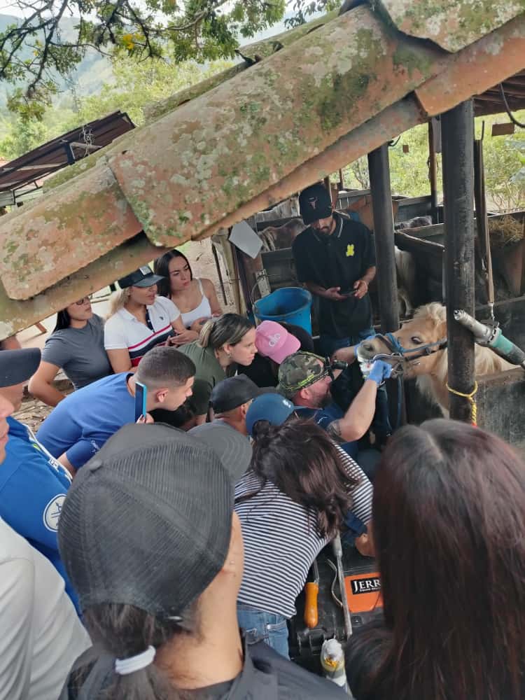 La práctica se realizó en el Criadero El Trébol de Girardota, reconocido por la crianza y selección genética de caballos minis, una raza equina de talla reducida, desarrollada mediante procesos de reproducción controlada.